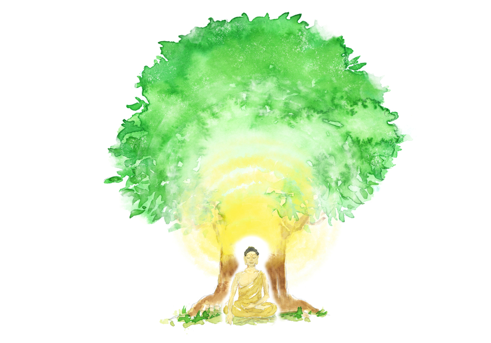 苦行を捨て身心共に回復されたお釈迦さまは、ガヤという地にある大きな菩提樹の下で瞑想を始められました。瞑想を続けられる中で、恐ろしい悪魔に襲われますが、それらに打ち勝ち、ついに、悟りを得られました。