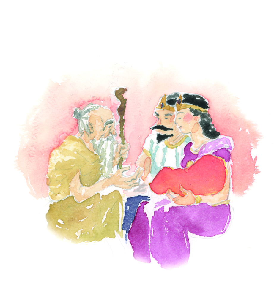 アシタ仙人は、釈迦族の王子(お釈迦さま)がお生まれになったと聞き、すぐに宮殿へ駆けつけました。